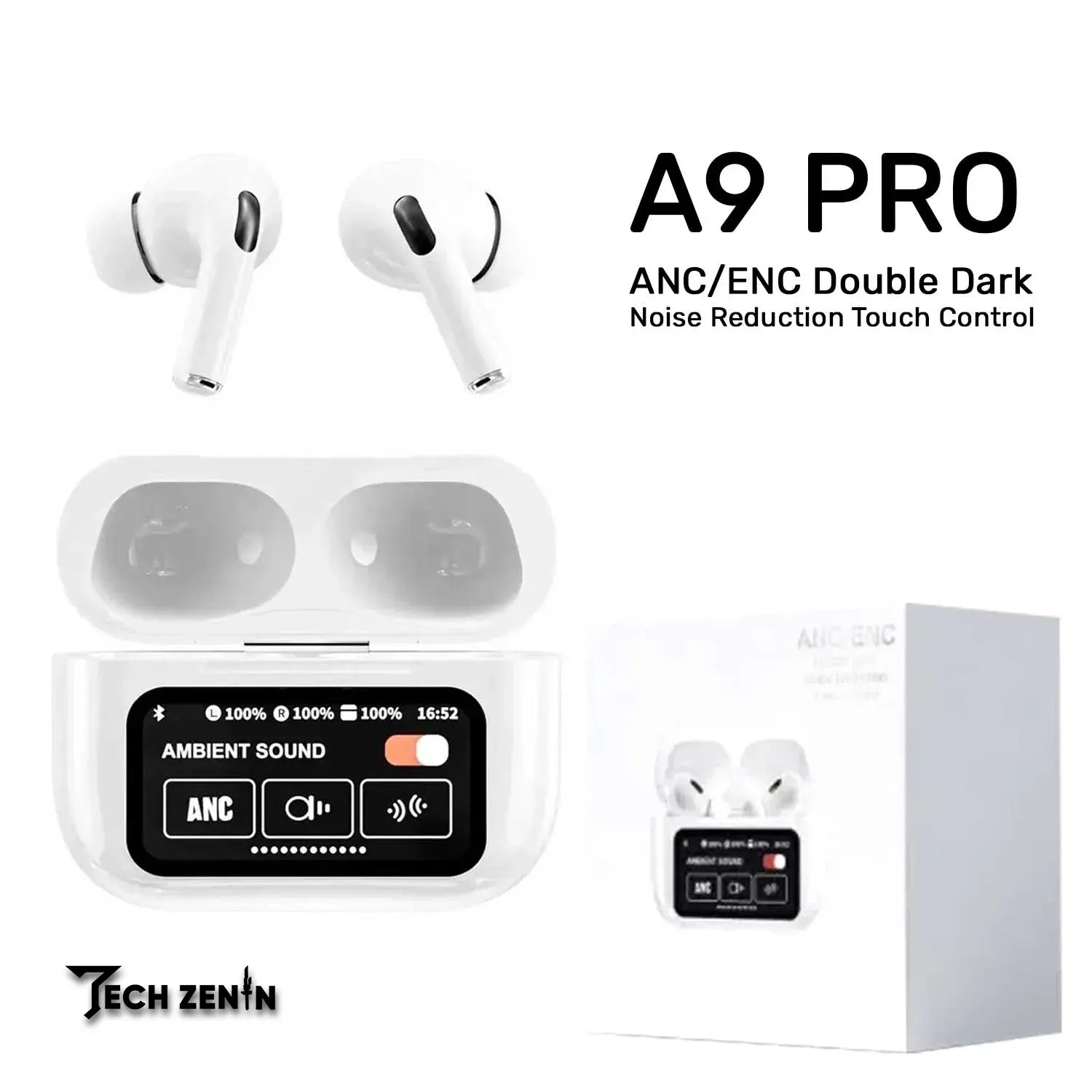 A9 Pro Apple AirPods | ANC/ENC Noise Cancelling Wireless Bluetooth 5.4 Earbuds with Smart Touch Screen